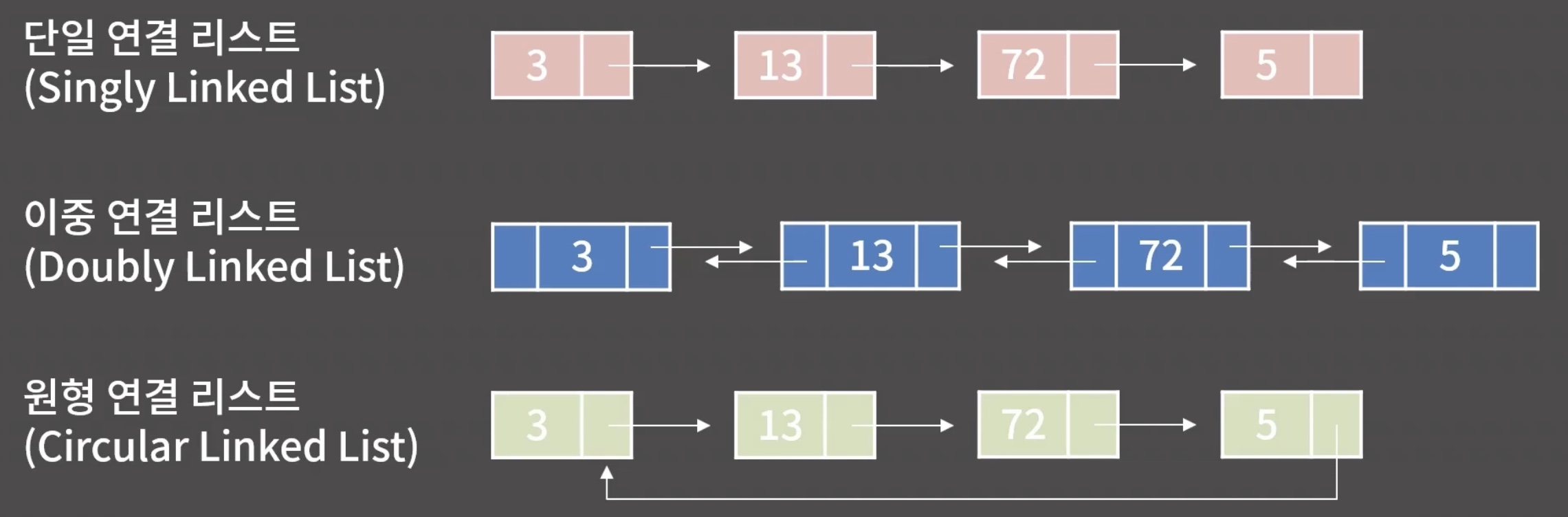 원소들을 저장할 때 그 다음 원소가 있는 위치를 저장하는 자료구조